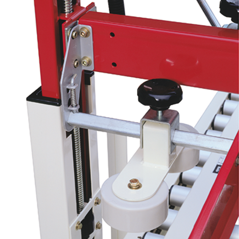 • 可調式壓箱輪,規正紙箱使貼帶位置精確
