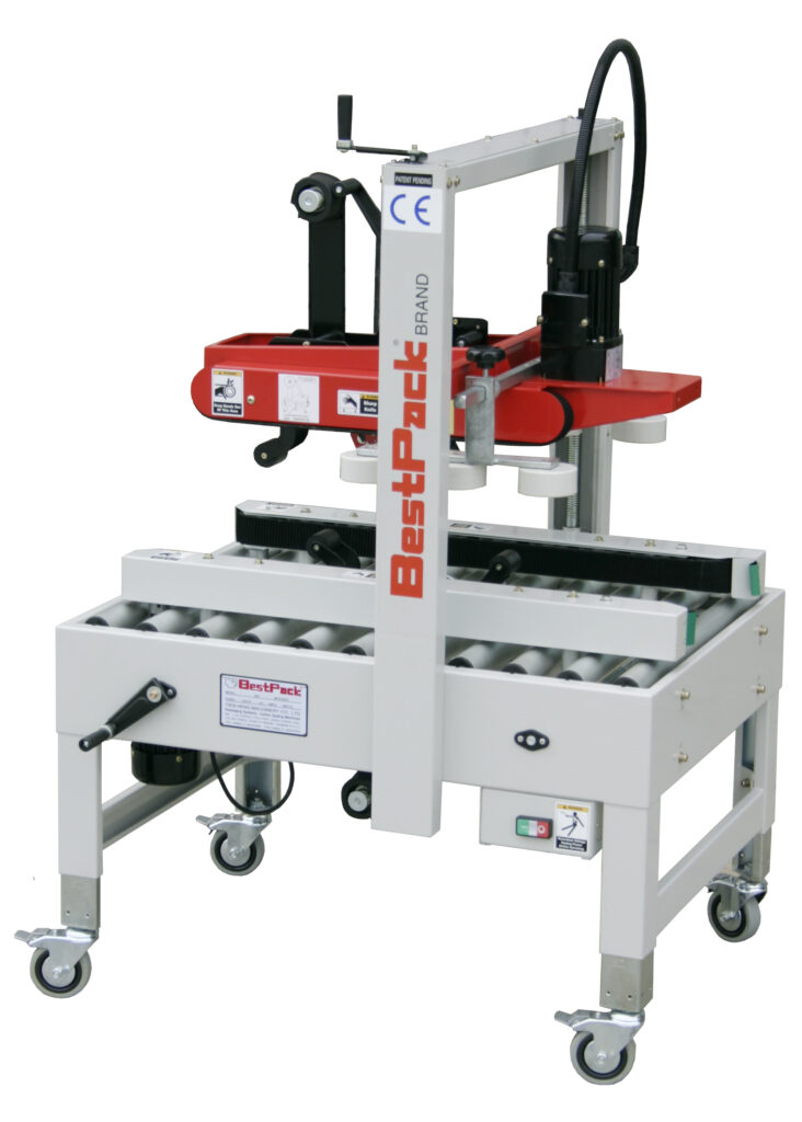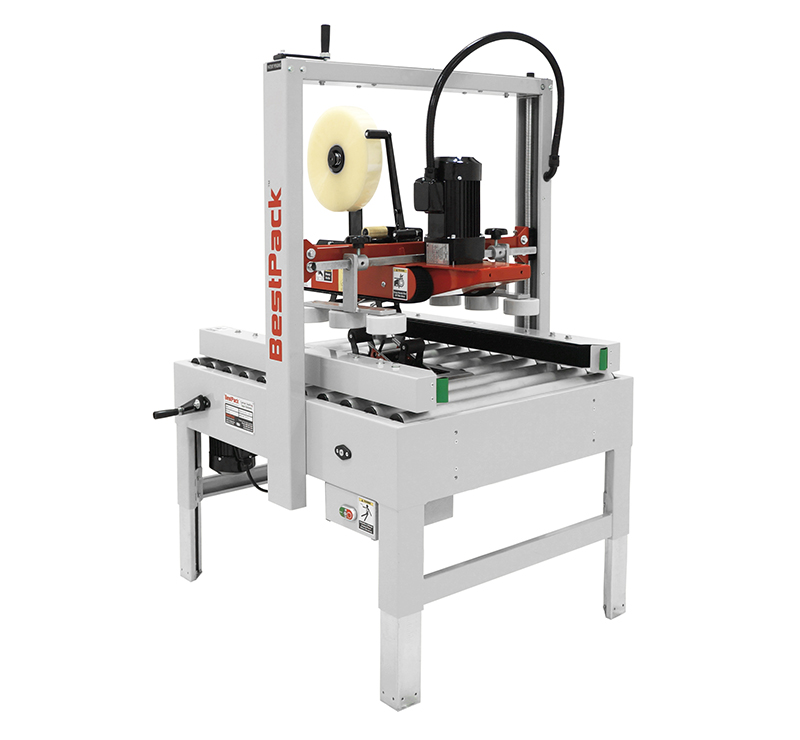 使用 4 條皮帶傳動的封箱機,兩條在側邊,兩條在上方,以更精確、更穩定的傳送紙箱。