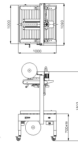 •上主機附刷子抹平系統,可確實地將封箱箱子上部膠帶抺平