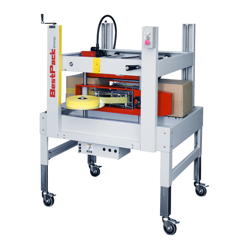 MTSS系列為一台半自動封箱機,其特色為側邊封箱,用於有效密封因產品重量、形狀和尺寸而需要從側面填充的紙箱。
