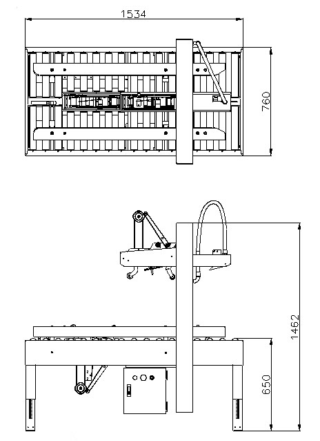 • 上主機附刷子抹平系統,可確實地將封箱箱子上部膠帶抺平