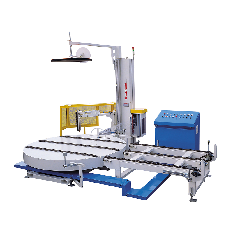 SW801-FA全自動膠膜機,為一全自動輸送、膠膜裏包、切膜,只要設定完成,機械即自動將您所設定完成作業。SW系列膠膜裏包機可選配整合式秤重裝置、加長纏繞高度和更大尺寸的轉盤。所有 BestPack 膠膜裏包機均採用重型框架,並設有堆高機通道,方便搬運。